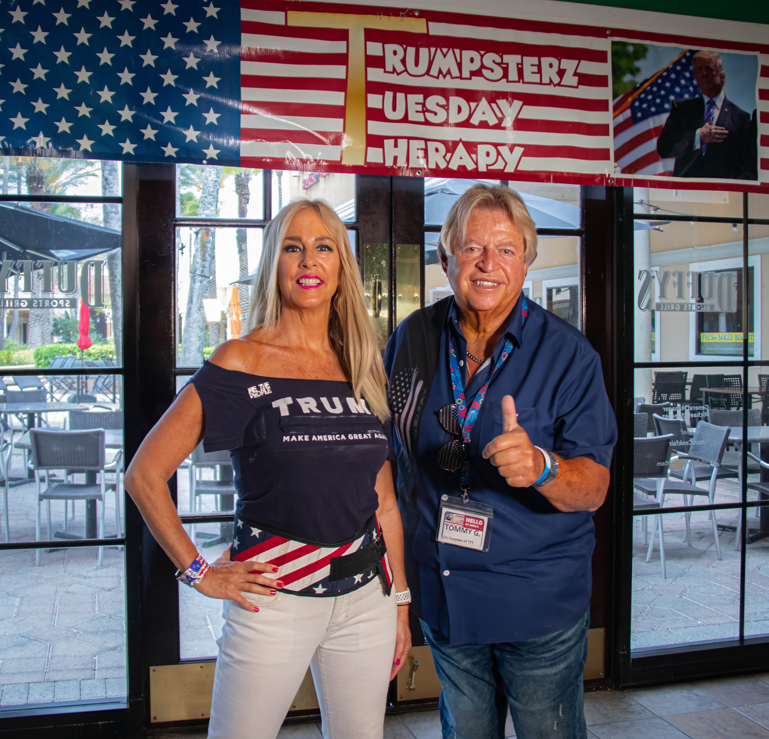 From waving flags to packed dance floors, this gallery captures the energy, music, and patriotism of our weekly Trumpsterz Tuesday Triumph gatherings across Palm Beach County. Click any photo to see it full-size and enjoy the slideshow.